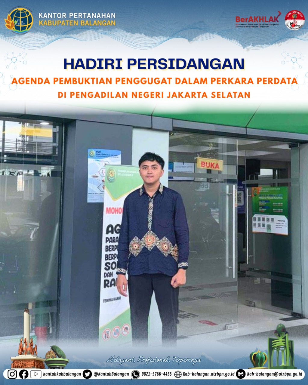 Dalam kesempatan tersebut, Kantor Pertanahan Kabupaten Balangan diwakili oleh Bapak Roby Auliandy, S.H., dari Seksi Pengendalian dan Penanganan Sengketa turut berhadir Sebagai bagian dari upaya untuk mendukung penyelesaian sengketa secara hukum, Kantor Pertanahan Kabupaten Balangan memastikan kehadiran dan partisipasinya dalam proses peradilan yang transparan dan adil.