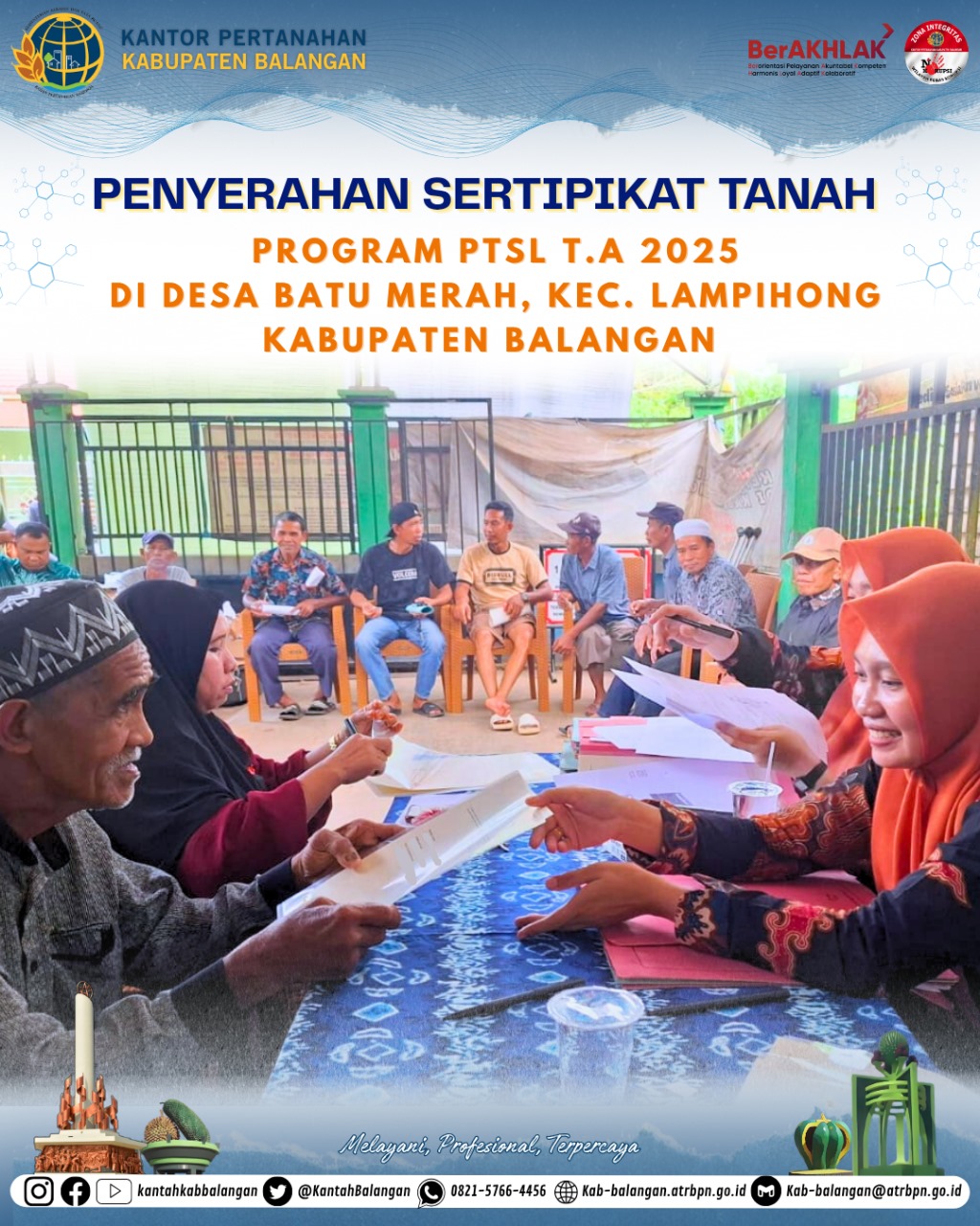 • Ibu Rismiati Marisa, S.H., M.Kn. selaku Kepala Kantor Pertanahan Kabupaten Balangan, yang diwakili oleh Ibu Norhaili Yulianty, S.P. selaku Kepala Subbagian Tata Usaha,