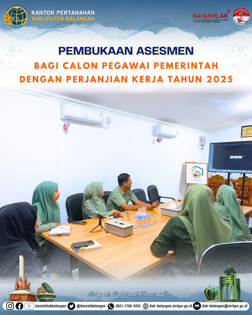 Kegiatan ini diikuti oleh Ibu Norhaili Yulianty, S.P., selaku Kepala Subbagian Tata Usaha, bersama para Pegawai Pemerintah Non Pegawai Negeri (PPNPN) yang menjadi peserta dalam proses seleksi PPPK tahun ini. Seluruh peserta mengikuti kegiatan dari Aula Kantor Pertanahan Kabupaten Balangan.