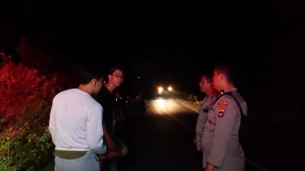 Daniel (kaos putih) bersama Kevin saat menceritakan kronologi kecelakaan kepada aparat kepolisian di lokasi kejadian.