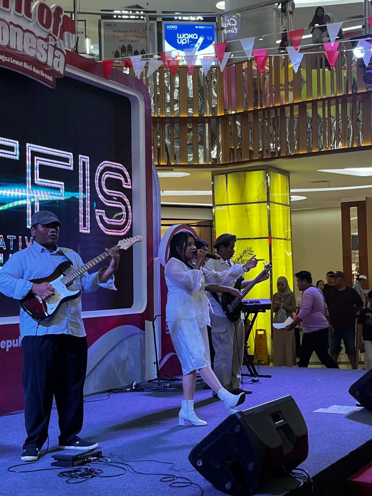 BANJARBARU, Borneoinfonews.com – “Aku tadi hampir nangis,” ujar Penyanyi sekaligus influencer Alint Markani usai tampil di Konser Kemerdekaan di Q Mall Banjarbaru, Sabtu (23/8/2025). Malam itu, ia bukan hanya bernyanyi, tetapi juga mendapatkan pelajaran hidup saat berkolaborasi dengan Netfis Band, grup musik penyandang disabilitas.